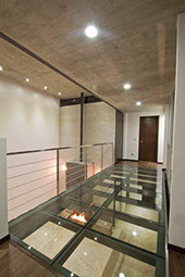 • Piso con cristal claro laminado.
